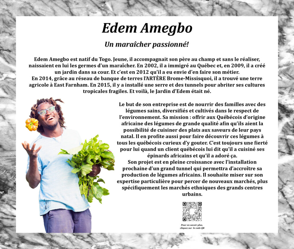 Ce projet vise à mettre en lumière l’apport des personnes d’ascendance africaine au développement de l’Estrie. Il a également pour objectif de faciliter l’accessibilité de ces dernières au sein des instances décisionnelles ou comités des différentes institutions de notre région.
