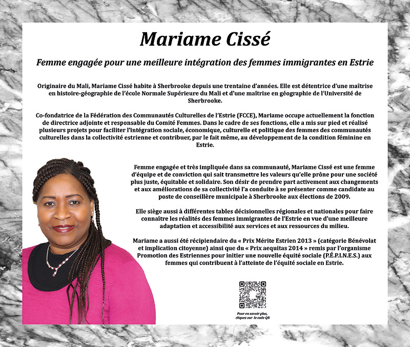 Ce projet vise à mettre en lumière l’apport des personnes d’ascendance africaine au développement de l’Estrie. Il a également pour objectif de faciliter l’accessibilité de ces dernières au sein des instances décisionnelles ou comités des différentes institutions de notre région.